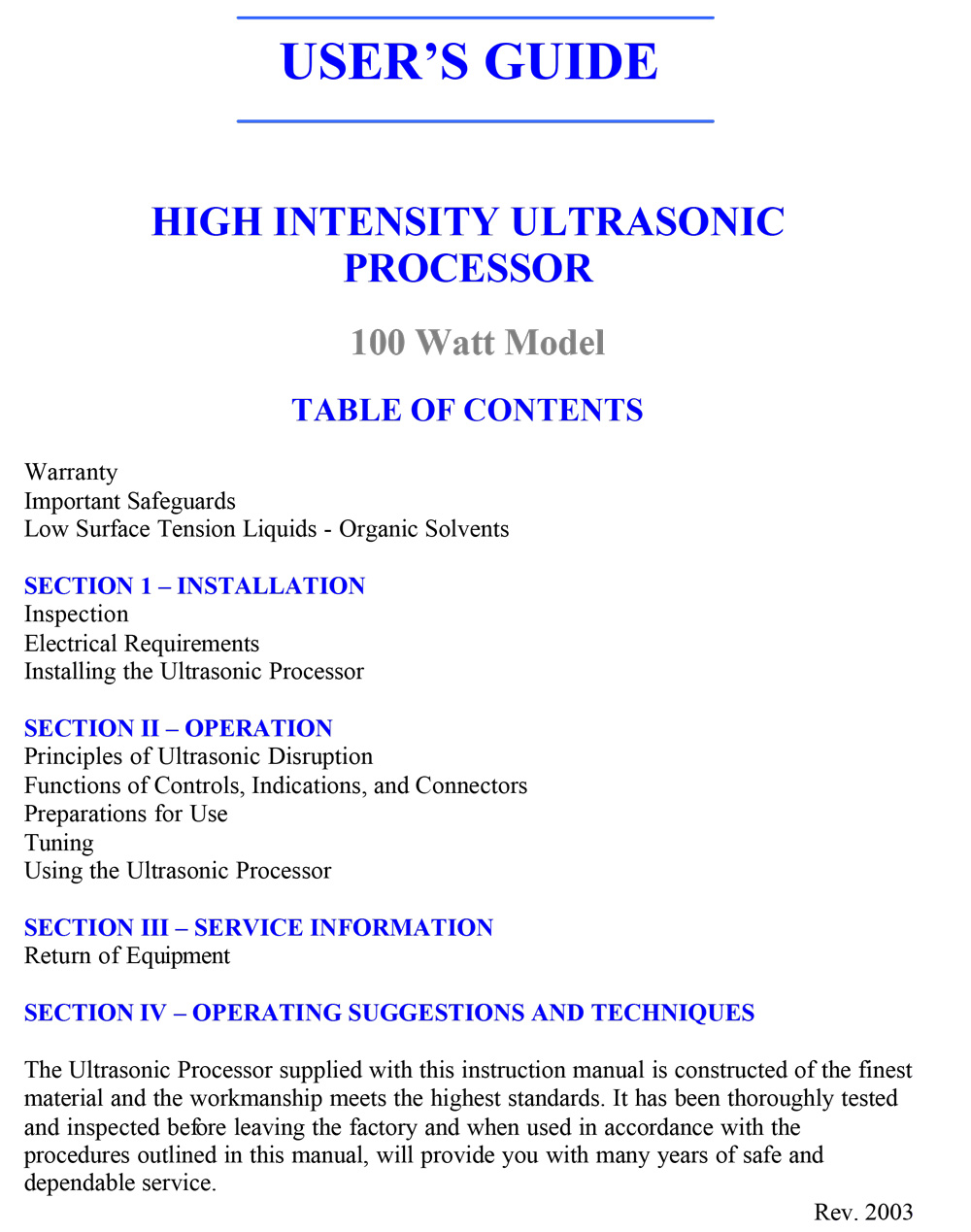 Ultrasonic Liquid Processing