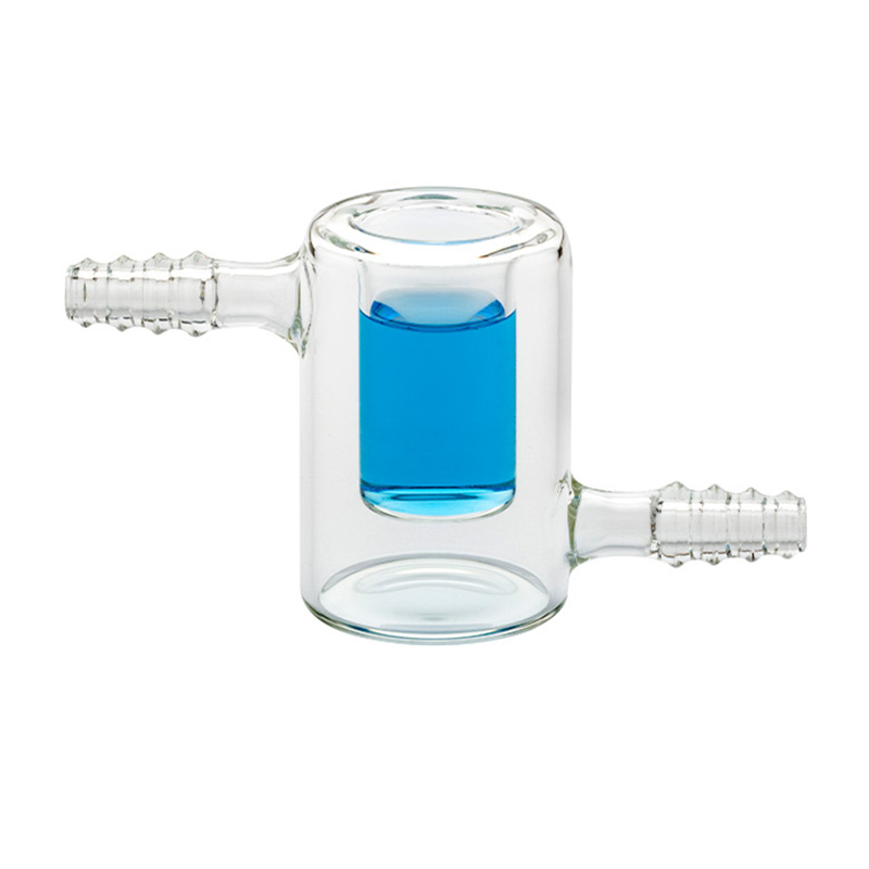 The jacketed beaker is attached to a chiller or another cold water source. The chilled water is circulated around the liquid within the beaker maintaining the desired sample temperature.