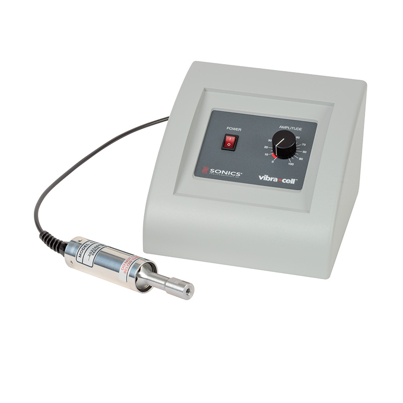 The VC-50A is a small and compact 50-watt ultrasonic processor. A probe can be held by hand and ultrasonic energy is activated by turning the amplitude knob on the front panel.