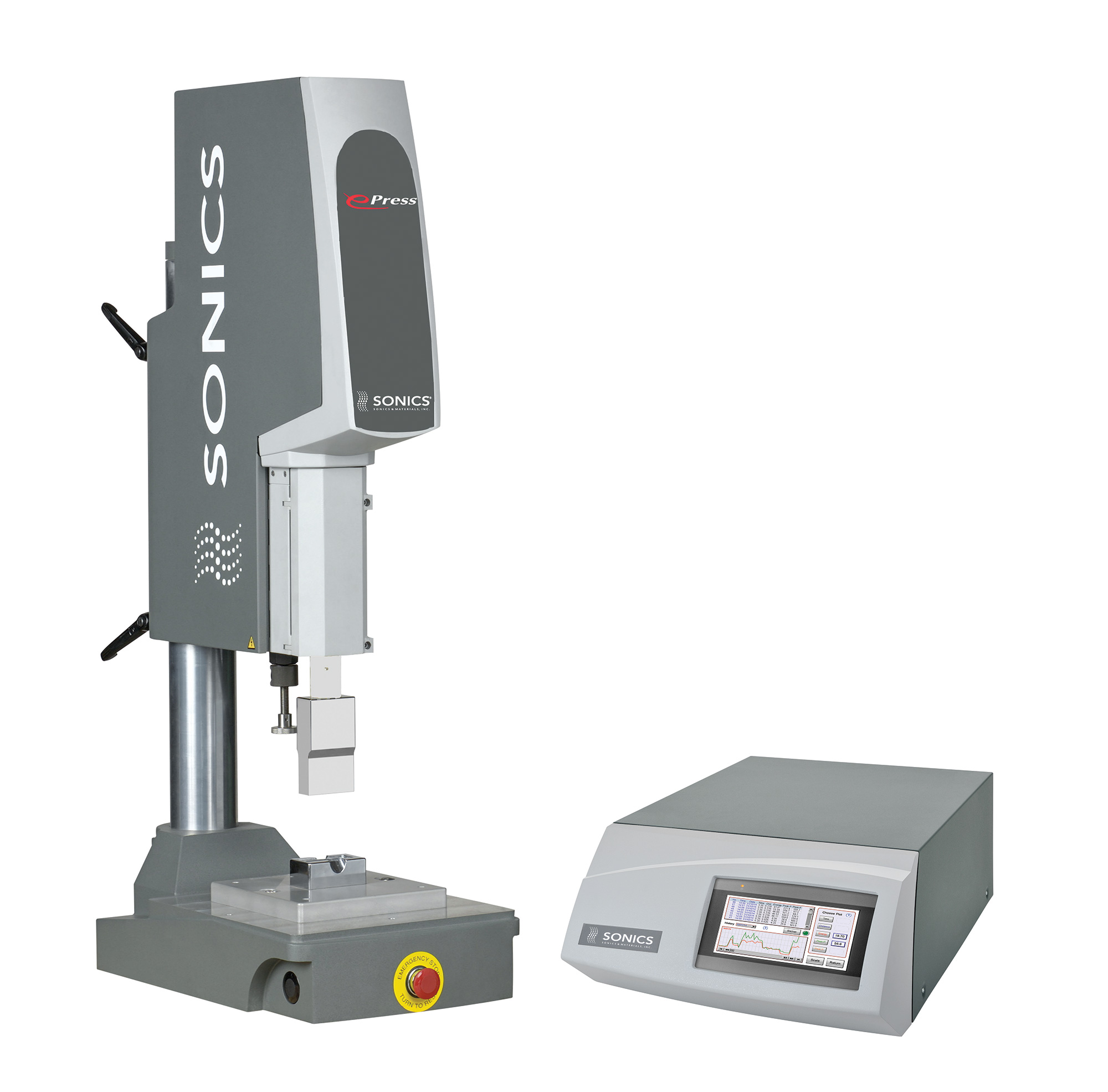Sonics’ 20, 30 and 40 kHz e-Press™ ultrasonic plastics assembly systems feature a stepper motor drive with optical linear encoder that provides superior precision control with a weld depth tolerance of +/-0.0003 inches (0.008 millimeters). Electric stepper motor with ball screw actuator assures repeatable welds to pre-set final weld requirements.