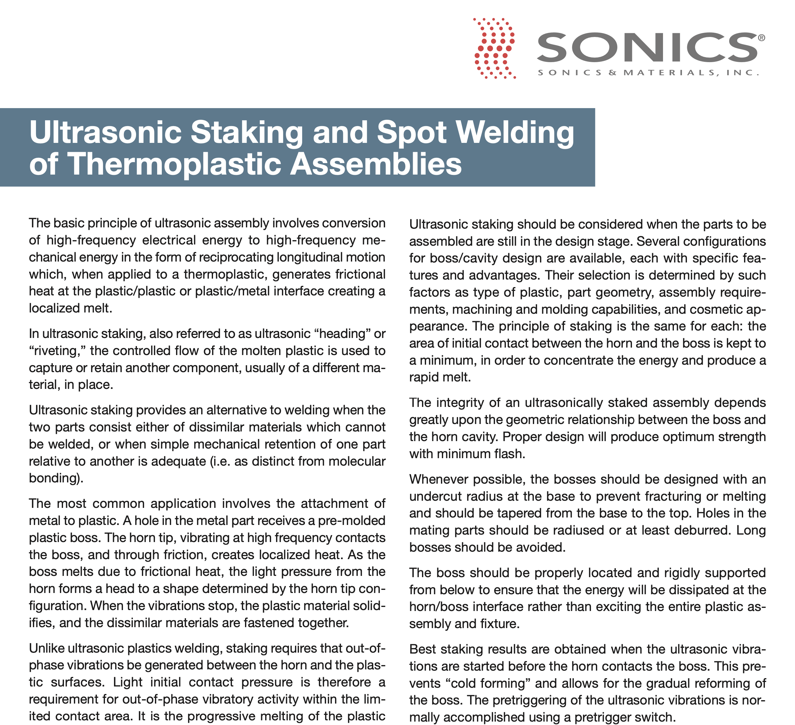 Ultrasonic Staking & Spot Welding of Thermoplastic Assemblies