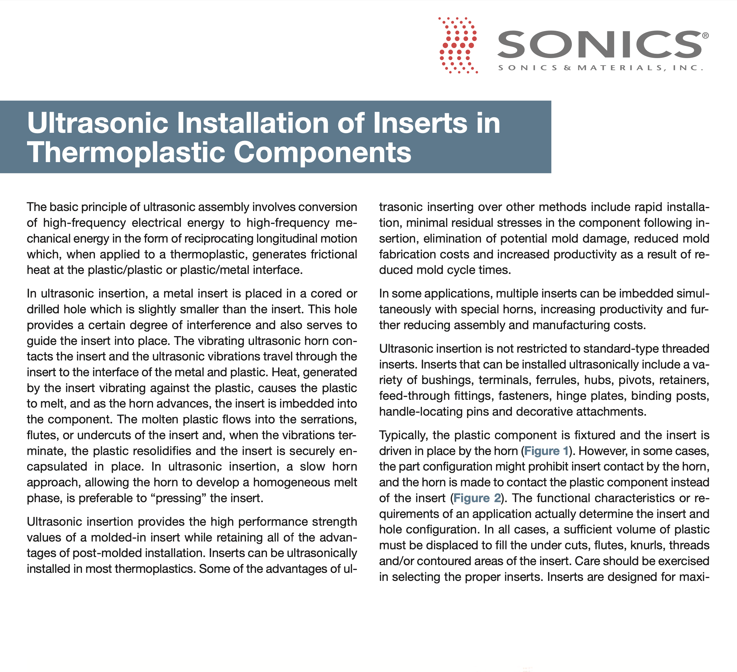 Ultrasonic Installation of Inserts in Thermoplastic Components