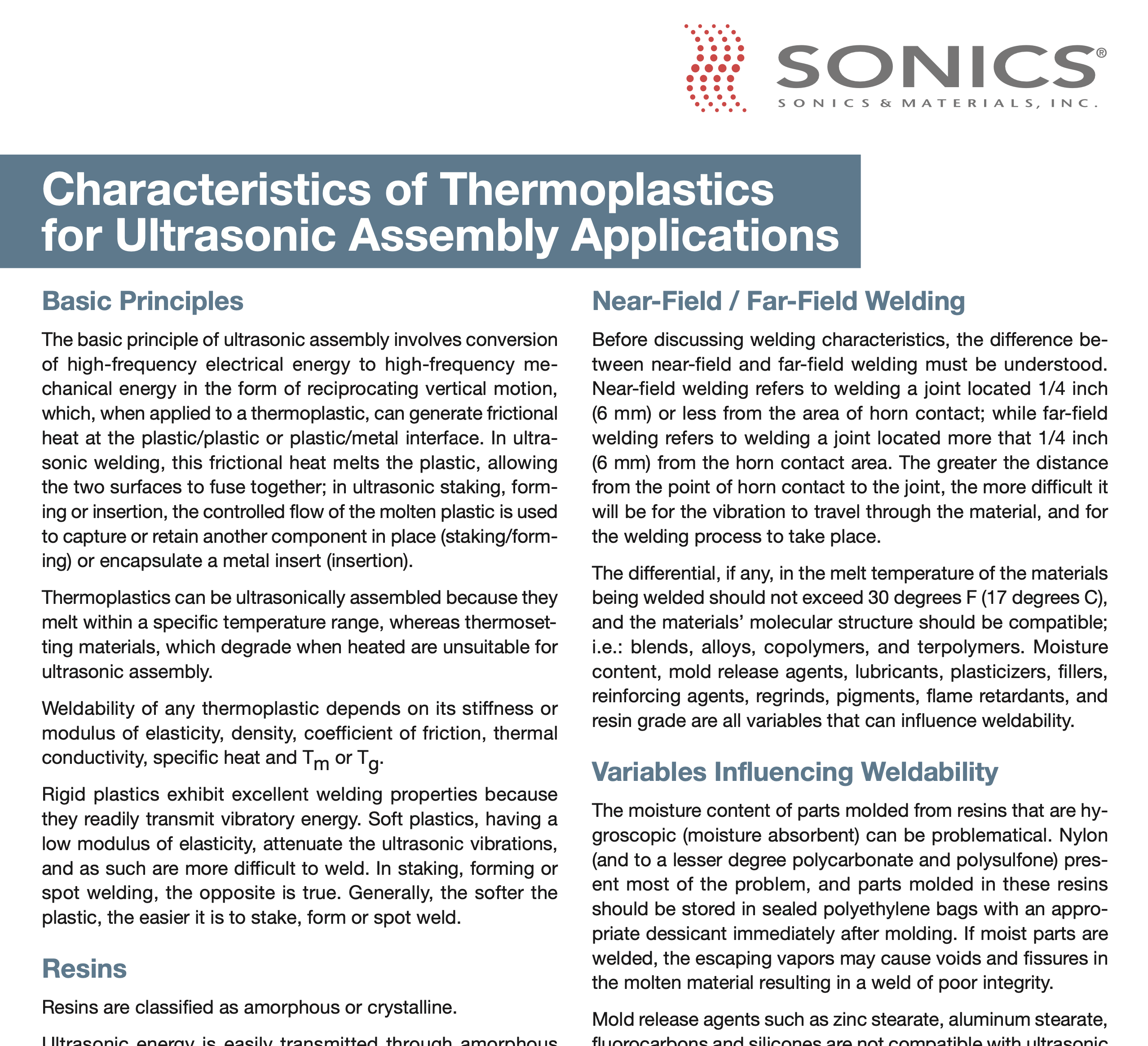 Characteristics of Thermoplastics for Ultrasonic Assembly Applications